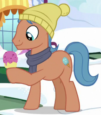 Appears in My Little Pony Best Gift Ever eating ice cream outside Carousel Boutique. His cutie mark is an ice cream cone. |