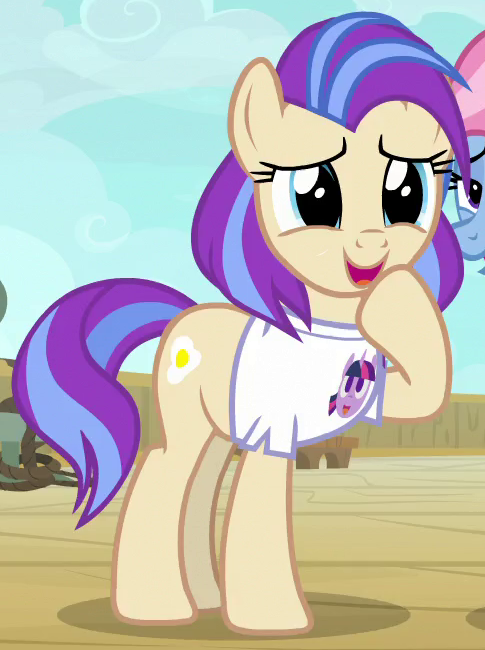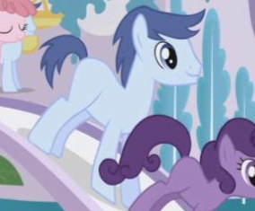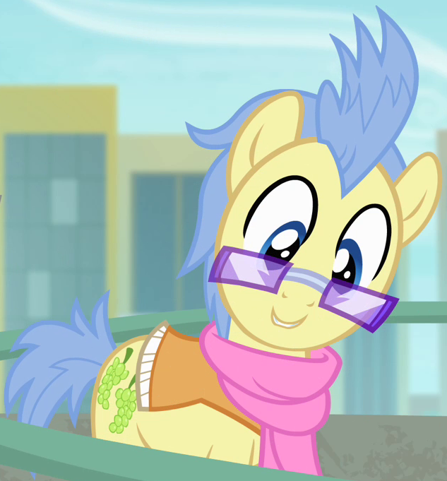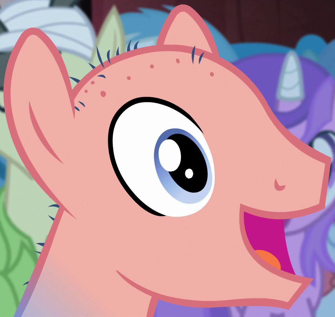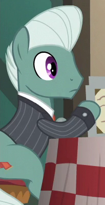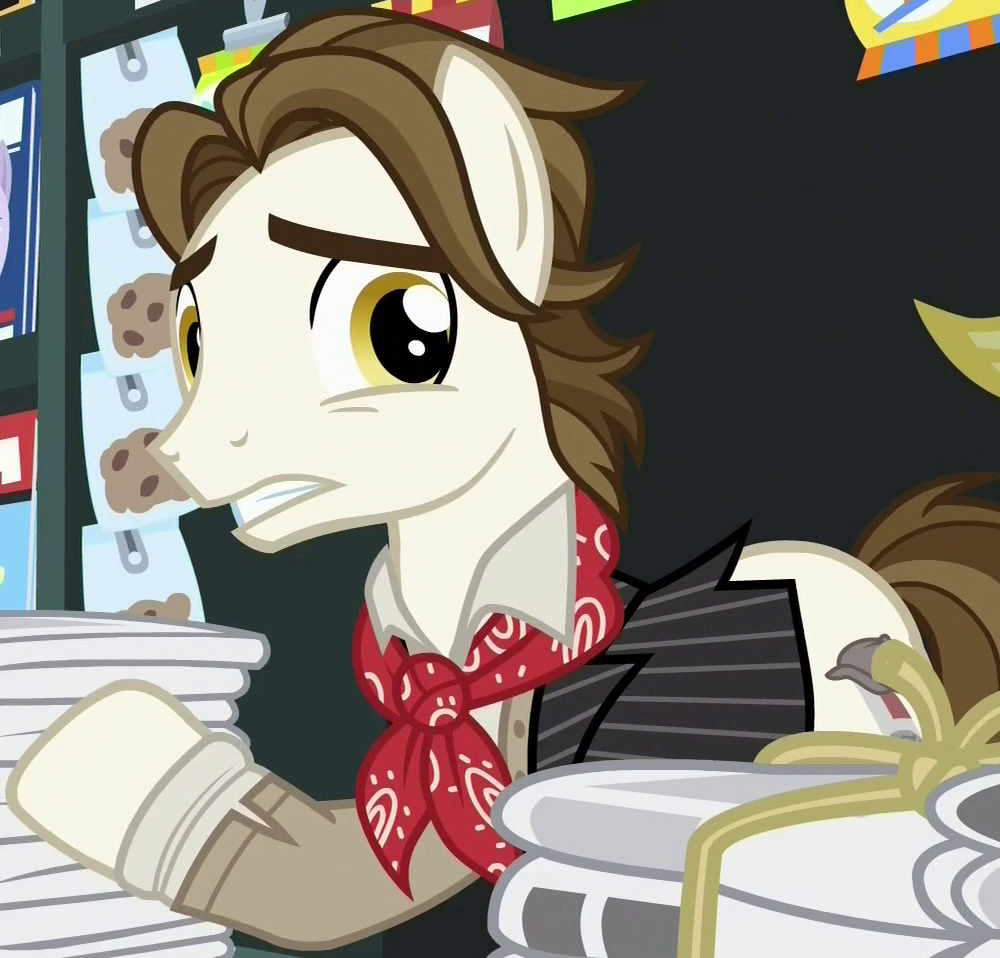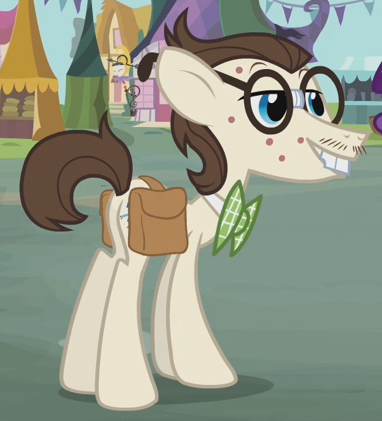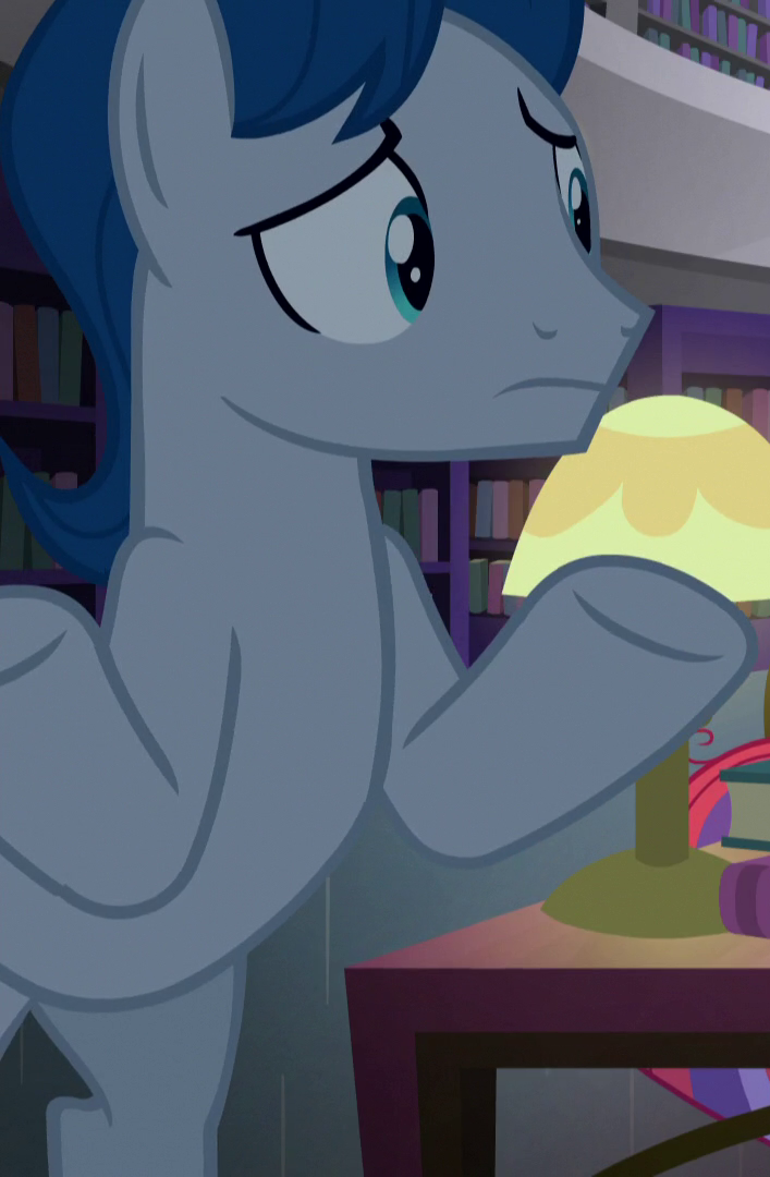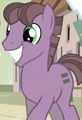 Appears in Fame and Misfortune as an out-of-town pony from Fillydelphia getting Twilight Sparkle to autograph his copy of the published friendship journal. His cutie mark is a piece of milk toast. Either he or S07E14 Unnamed Unicorn Mare #1 is not in Fame and Misfortune's locked script. |