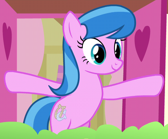 A student/cheerleader at the School of Friendship in 2, 4, 6, Greaaat. She is a character in Gameloft's mobile game. Her bio states "One of the School of Friendship Cheer Team's two lead dancers. Who's got spirit? She does!" Her cutie mark is a horseshoe and two pompoms. Voiced by Kelli Ogmundson. |