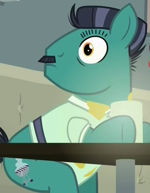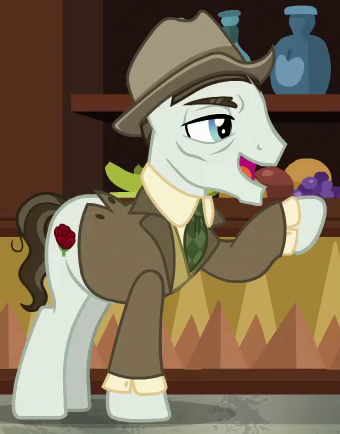 Appears in Sparkle's Seven as a bartender in Rarity's fantasy sequence. Voiced by Brian Drummond. |