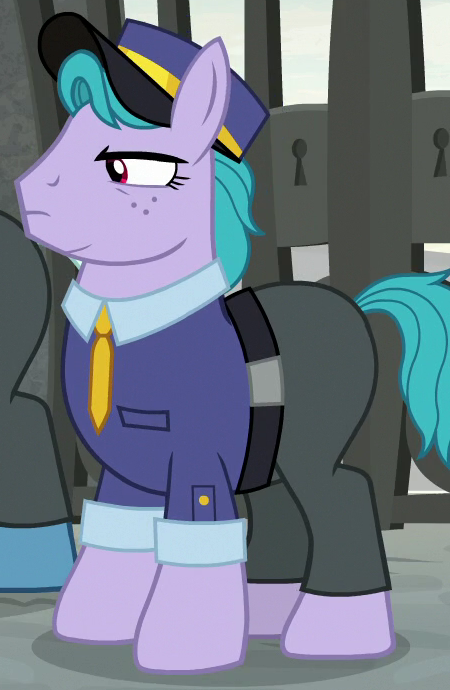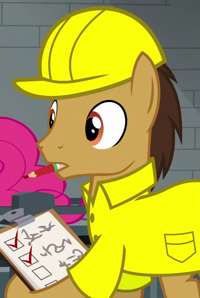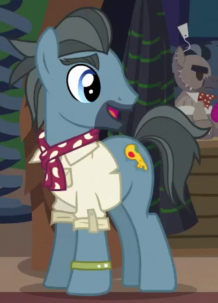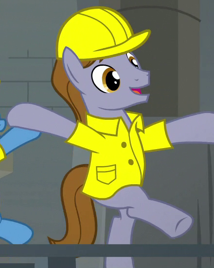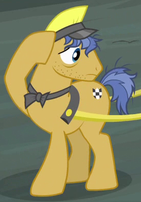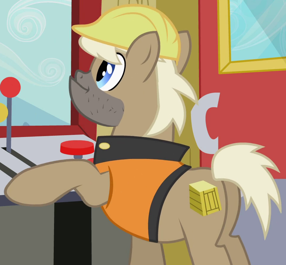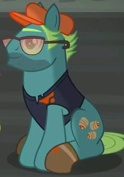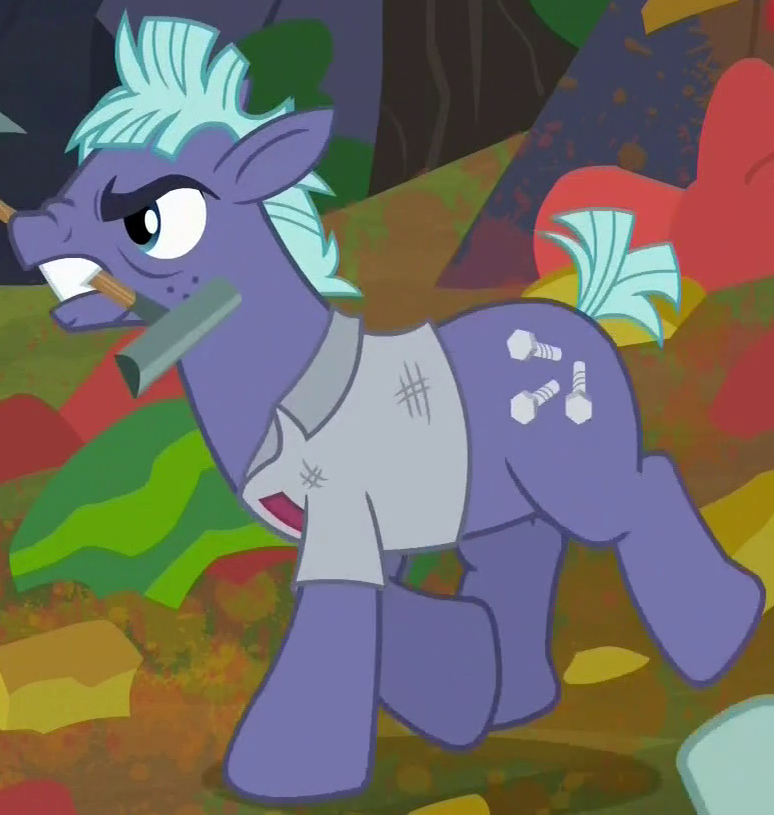 Appears in Growing Up is Hard to Do operating the Ferris wheel at the Appleloosa County Fair. Shares his body model with Gizmo, "Burdock Hooffield", "Street Rat", "Spiral Notepad", and "Ginger Locks". His cutie mark is a cracked cogwheel. |