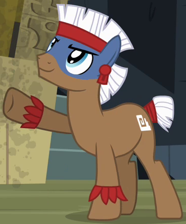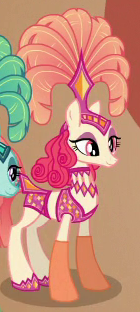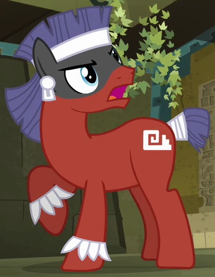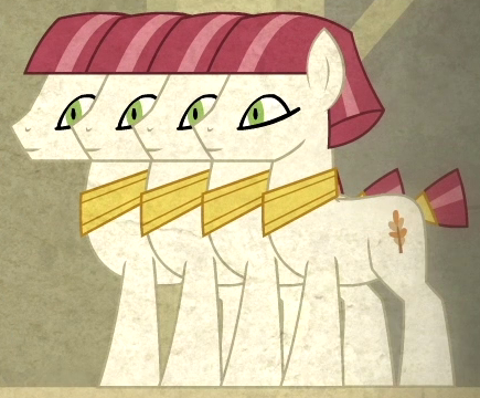 Appears in Daring Done? up to thirty-six times at once as a servant of Prince Hisan in Somnambula's legend. His cutie mark is a red plant growth. |