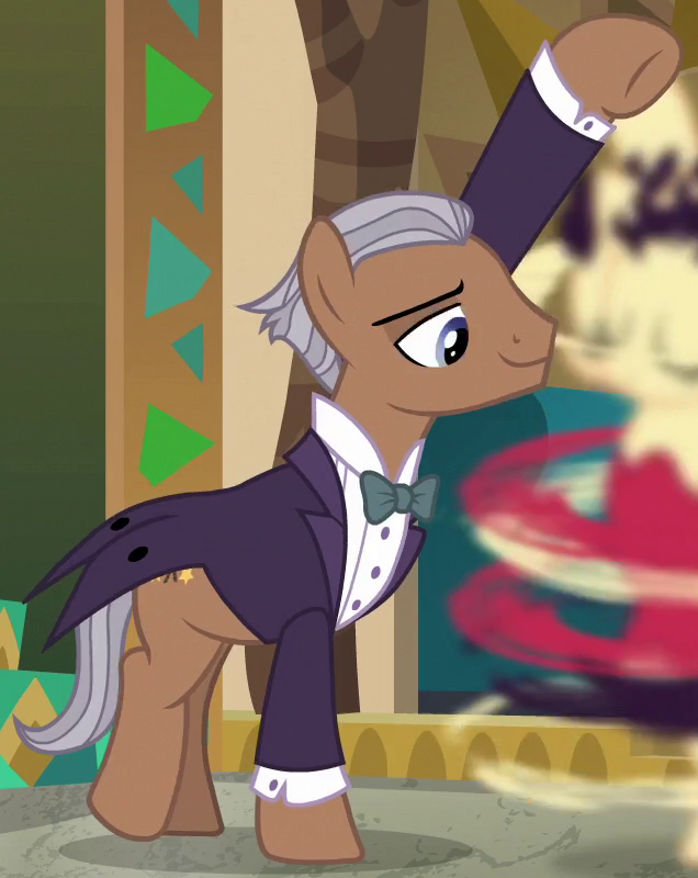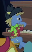 Appears in Once Upon a Zeppelin as a passenger on Iron Will's Cruise of the Princesses Experience. Also appears in Grannies Gone Wild. Shares his design with S08E14 Unnamed Earth Stallion #1 and S09E26 Unnamed Earth Stallion #2. His cutie mark is a volcano. |