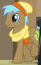 Appears in My Little Pony Best Gift Ever running from Smoky and selling sewing machines. He is a character called "Northerly Pony" in Gameloft's mobile game; his bio states, "Raised in the frozen North by an adoptive family, this innocent young stallion isn't used to the hustle and bustle -- and raccoons -- of Ponyville." Shares his body type and eye color with "Turner McColt", Dandy Grandeur, "Snow Hope", and S08E19 Unnamed Earth Stallion #1 and his body type with Cheese Sandwich, "Mules Grassfield", and Mudbriar. Resembles Buddy the Elf from the film Elf; not to be confused with Buddy. Voiced by Sam Vincent. |