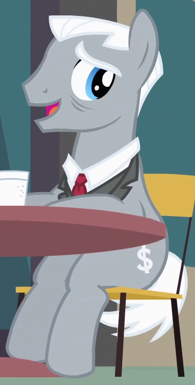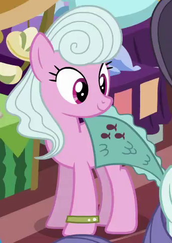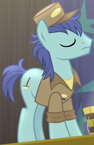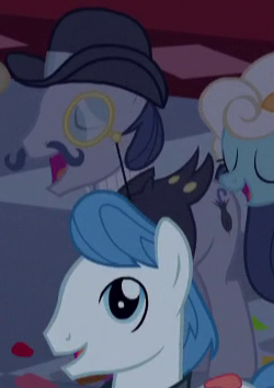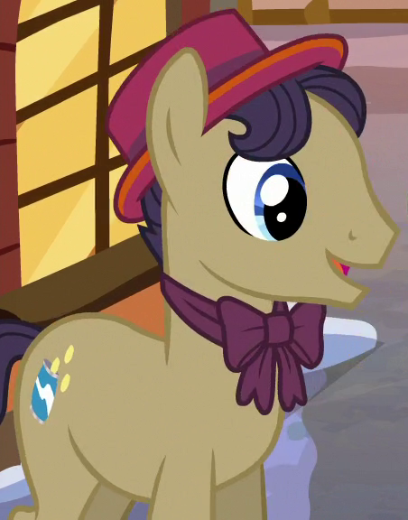 Appears in It Isn't the Mane Thing About You outside Mr. Breezy's fan store. His cutie mark is a paper fan. |