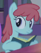 Appears in The Point of No Return living in Dusty Pages' old house. His cutie mark is three red dumbbells. Voiced by Paul Dobson. |