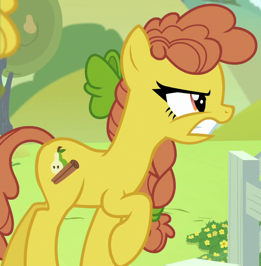 Appears in flashback in The Perfect Pear as a member of the Pear family. His cutie mark is a pear and pie. |