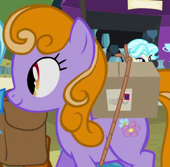 A Canterlot fruit seller in The Ending of the End - Part 1. Voiced by Nicole Oliver. |