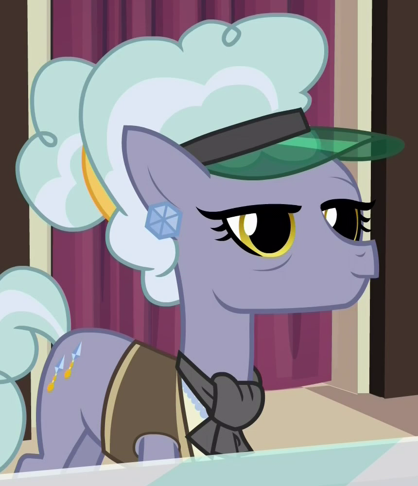 A Rarity For You salespony in The Saddle Row Review and Fake It 'Til You Make It. Also appears on My Little Pony/Transformers Issue #1 page 11. She is a character in Gameloft's mobile game, and acts as a helper during the "Fake It 'Til You Make It" boss battle event. Her bio states, "This 'Rarity for You' shop-pony knows WAY more about organza than Rainbow Dash. Granted, that's a pretty low bar." Her cutie mark is a spool of blue thread. Voiced by Caitlyn Bairstow. |