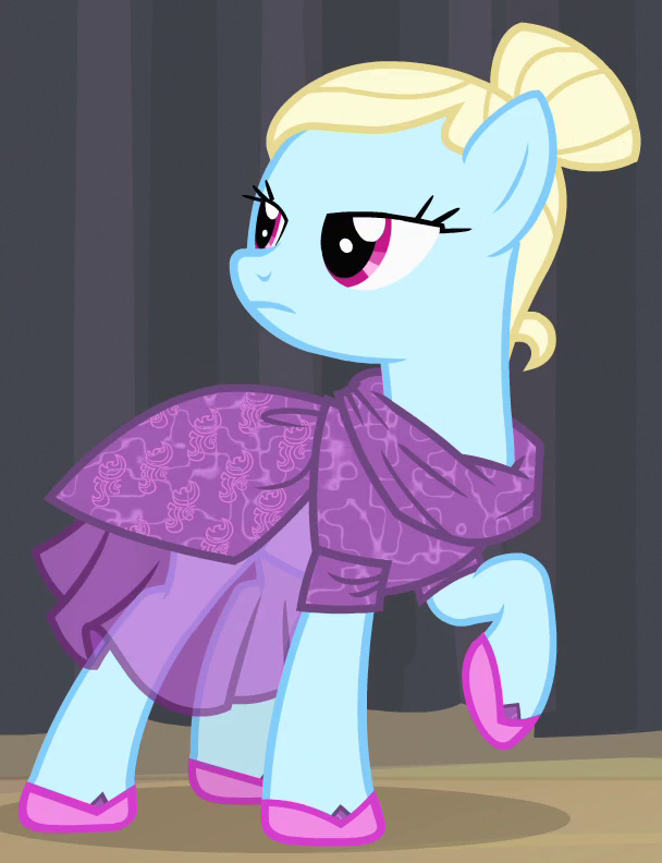 A Russian-accented dance instructor in On Your Marks. Partly resembles "Stardom" and S08E22 Unnamed Earth Mare #1. Her cutie mark is an array of dance steps. Voiced by Tabitha St. Germain. She is a character in Gameloft's mobile game. Her bio states, "This pony will tutor all kinds of performers. There’s plenty of talent inside those leg warmers! " |
