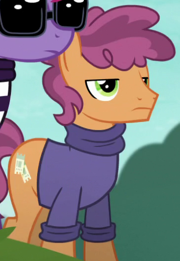 Appears in The Last Problem as a future student at the School of Friendship. He is a character named "Future-Looking Friendship Student" in Gameloft's mobile game, and serves as a boss battle helper during the "Prank to the Future Part Two" event. His in-game bio states "The School of Friendship's future student body counts creatures of all kinds--including ponies with an eye on generations yet to come." |