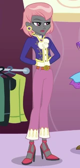 Prim Hemline's human counterpart appears in the Better Together short Display of Affection, where Rarity works as an intern in her dress shop. In the Choose Your Own Ending short Best Trends Forever, Rarity forgets to bring Prim Hemline's style guide when reporting on the latest fashion trends for a student-hosted CHS news report.