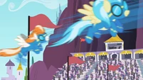 Wonderbolts ready to race...Wait. Is this Earth Pony standing on a cloud?