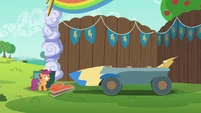 "When Ponyville started the Derby, they decided to use the wood from our apple trees for the carts."