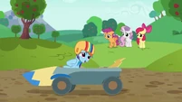 "Just remember, everypony. Your cart has to be able to finish the race..."